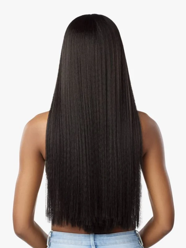 Silk Pressed, long straight style.
